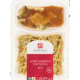 61% Bami Goreng: 65,3% gekookte tarwemie (water, tarwemie (durumtarwe, water)), 13,2% prei, 7,5% ham (60% varkensvlees*, water, aardappelzetmeel, zout, varkenseiwit, stabilisator: E407/E450/E451, antioxidant: E301, natuurlijk aroma, conserveermiddel: E250), 7,5% vrije uitloopei**, volledig geraffineerde sojaolie, 1,8% gemarineerd gegaard varkensvlees (varkensvlees, water, zout, suiker, gember, specerijen (anijszaad, venkelzaad, peperkorrels, kaneel, gember), witte peper), suiker, zout, gistextract (gistextract, zout, zonnebloemolie). 39% Saté Ajam: water, 27,6% gemarineerde gegaarde kip (90% kipfilet*, volledig geraffineerde sojaolie, ketjap (water, suiker, soja-eiwit, kleurstof: karamel, zout, verdikkingsmiddel: E466, conserveermiddel: E202), sambal (gemalen chilipepers, zout, water, conserveermiddel: E202, zuurteregelaar: E270), zout, suiker, gistextract (gistextract, zout, zonnebloemolie), komijnzaad, koriander, citroensap, kurkuma), 17,5% gemalen pinda, suiker, ui, volledig geraffineerde sojaolie, tomatenpuree, tarwemeel, ketjap (water, suiker, gehydrolyseerd soja– en maïseiwit, zout, kleurstof: karamel, verdikkingsmiddel: E466, voedingszuur: E330, zonnebloemolie, aroma (selderij), conserveermiddel: E211), knoflook, gember, azijn (water, azijn, kleurstof: karamel), zout, gistextract (gistextract, zout, zonnebloemolie), sambal (gemalen chilipepers, zout, water, conserveermiddel: E202, zuurteregelaar: E270). * = Beter Leven keurmerk 1 ster. ** = Beter Leven keurmerk 2 sterren.