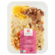 44,1% gekookte bami (water, durumtarwe), 11,5% gemarineerde gegaarde kip (83% kipfilet*, suiker, ketjap (water, suiker, gehydrolyseerd sojaeiwit, kleurstof: karamel, zout, verdikkingsmiddel: E466, conserveermiddel: E202), tomatenpuree, hoisinsaus (witte suiker, water, gefermenteerde sojapasta (water, zout, sojabonen, tarwe), zout, gedroogde zoete aardappel, kleurstof: karamel, gemodificeerd maïszetmeel, gedehydrateerde knoflook, sesamzaadpasta, specerijen, gezouten chilipeper (chili, zout), voedingszuur: E260), gember, kruiden (anijszaad, venkelzaad, peperkorrels, kaneel, gember)), 9,6% broccoli, 7,6% vrije uitloopei**, 7,6% ui, 3,8% wortel, 3,4% gele paprika, 3,4% rode paprika, 2,7% paksoi, volledig geraffineerde sojaolie, 1,5% peulen, suiker, zout, oestersaus (weekdieren) (water, suiker, zout, gemodificeerd maïszetmeel, oesterextracten (weekdieren), kleurstof: karamel), plantaardige olie (raapzaad, sesam), gistextracten (gistextract, zout, zonnebloemolie).